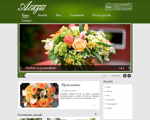 Acaju Ornamental este singura florărie din Municipiul Moinești ce oferă servicii complete și de calitate. Doar la noi găsiti cele mai frumoase și mai proaspete flori, servicii de împachetare flori, ornamente florale, coroane funerare, etc..