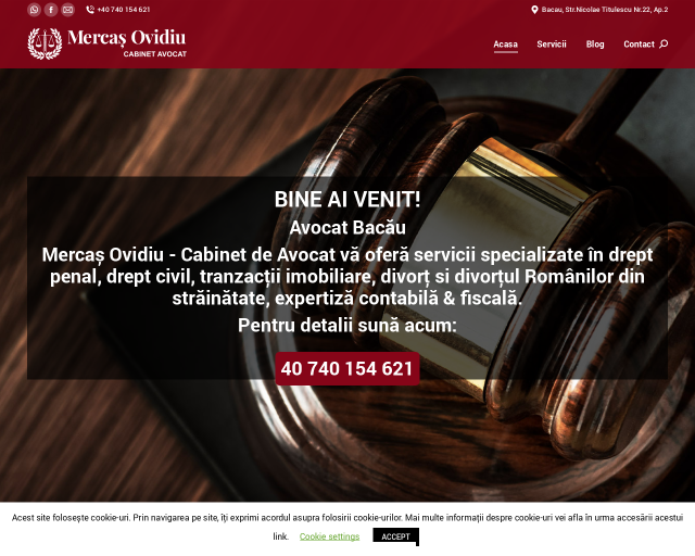 Mercaș Ovidiu - Cabinet de Avocat din Bacău, vă oferă servicii specializate în drept penal, drept civil, tranzacții imobiliare, divorț si divorțul Românilor din străinătate, expertiză contabilă & fiscală.