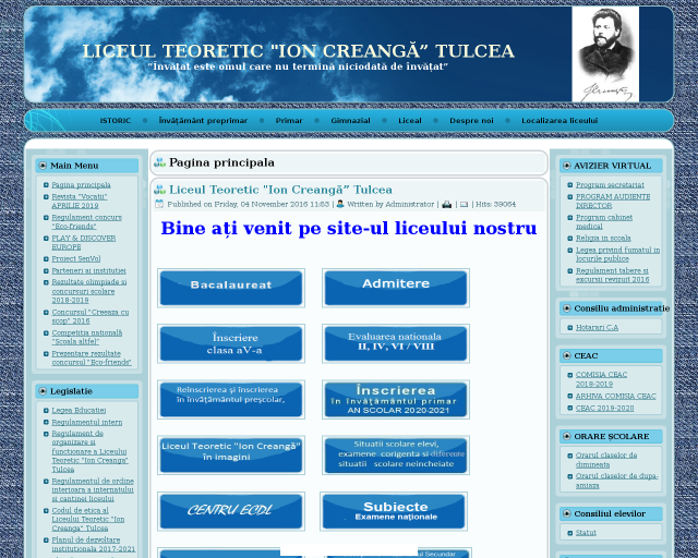 Site-ul oficial al Liceului Teoretic „Ion Creangă” Tulcea (fostul Liceu Pedagogic). Toate informațiile despre liceu, admitere, rezultate si profesori.
